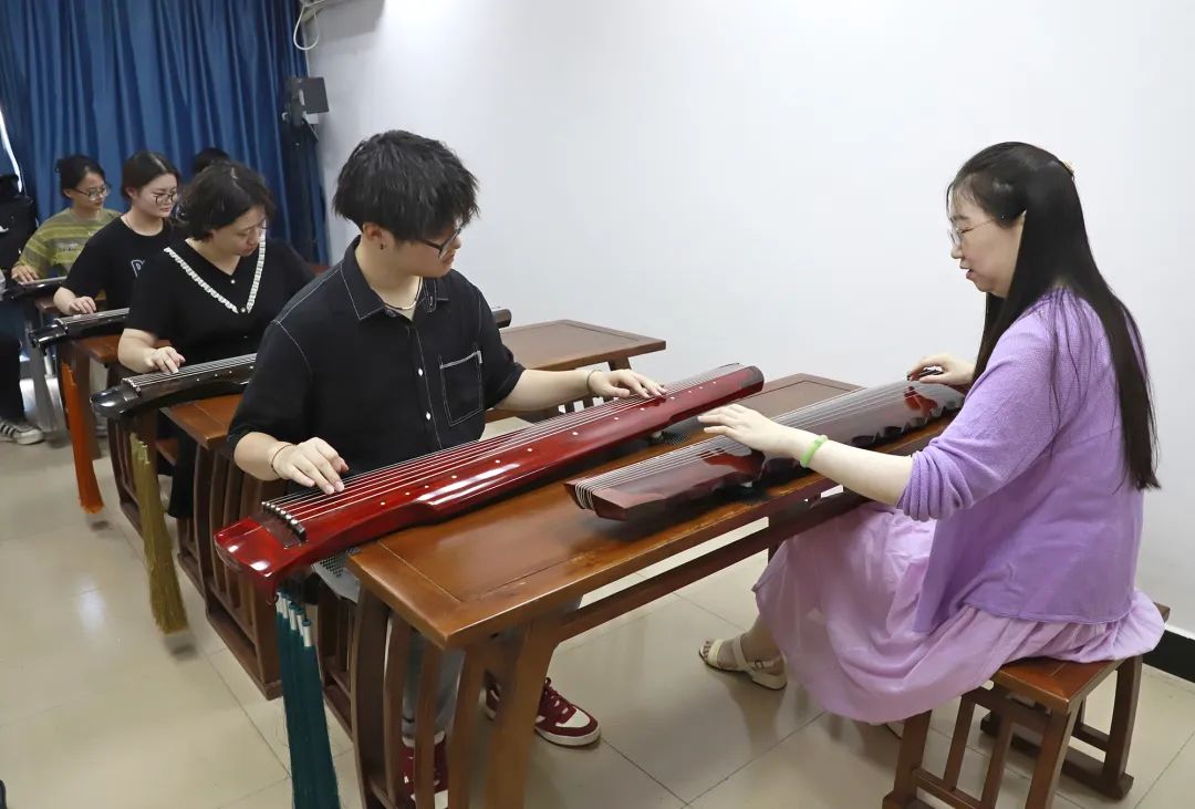 吴芸莉的热情也感染了她的同事。在她的带动下,文学院院长任晓霏、老师黄雪云、王丽媛、图书馆老师骆雪松等开始练琴。“在过去的三年里,古琴传习室为中外师生奏响了清音,音韵萦绕校园,成为连接东西方文化的桥梁。”任晓霏说。