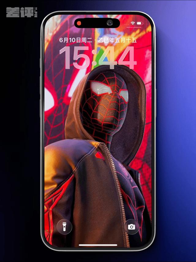 然后看,苹果的锁屏设计。锁屏的时间字体会根据壁纸智能调整尺寸,一些平面壁纸也可以产生一种“伪造” 3D “立体效果,就像手机转动的时候元素会跟着位移一样。这个设计有点像 visionOS 采用了空间渲染技术 iOS 上。