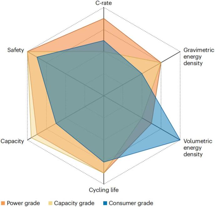 图3. 在功率、容量和消费电池领域,锂离子电池的主要参考标准。