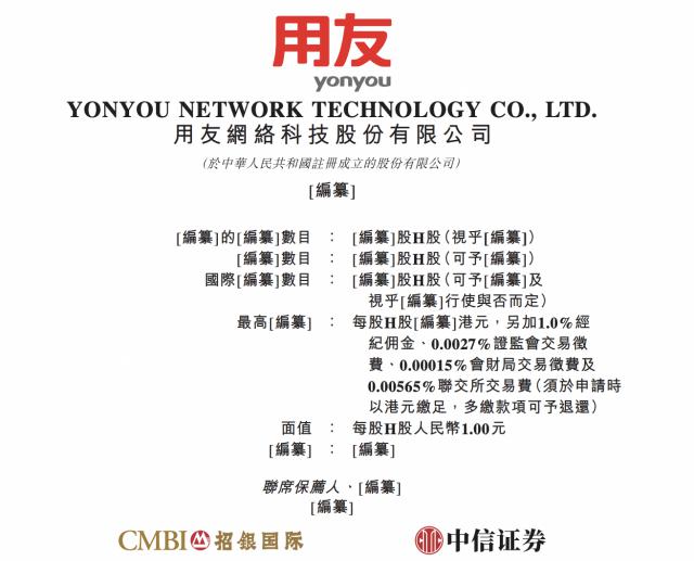 瑞财经 刘治颖 6 月 27 日本,用友网络科技有限公司(以下简称用友网)向港交所主板提交上市申请,招商银行国际和中信证券为其联席保荐人。
