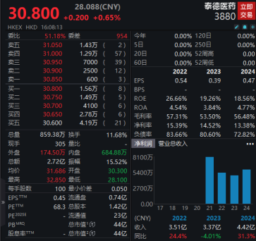 Wind显示,截至今日收盘,云知声大幅上涨44.59%,总市值达到210亿港元;IFBH大幅上涨42.09%,总市值达到105亿港元;泰德制药小幅上涨0.65%,总市值达到44亿港元。