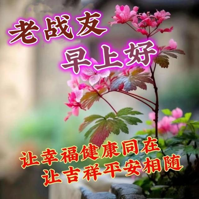 亲爱的老战友们又见面了,我送上祝福你们的心!幸福是甜蜜的,幸福永远伴随着你。风景如画如月,顺利如意升天!每天开心,机会都会主动来找你!早上好,战友们!