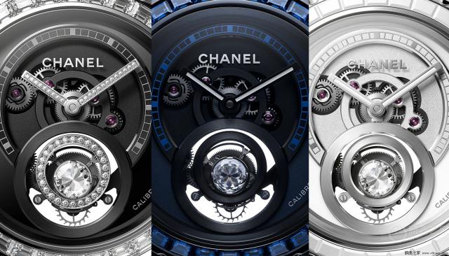 早在 2012 一年,香奈儿庆祝 Premi è re 手表问世 25 周年纪念日,推出 Premi è re 香奈儿在陀飞轮装置上装饰了山茶花,这是香奈儿女性最喜爱的元素之一,镂空浮动陀飞轮腕表。在 2015 在巴塞尔国际钟表珠宝展上,香奈儿带来了香奈儿 J12 镂空浮动陀飞轮腕表,并在陀飞轮上装饰裸钻彗星图案。