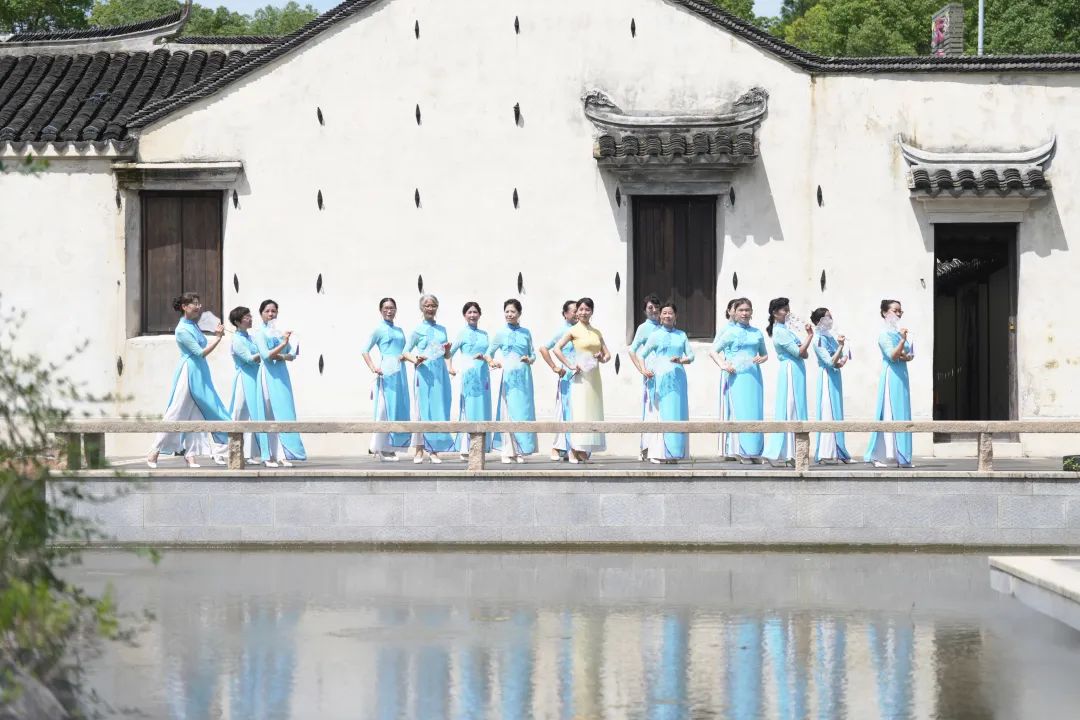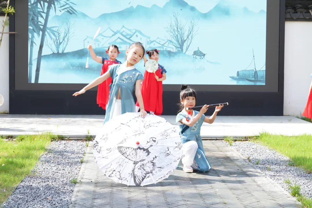 场外,一场独特的民族风格秀正在上演。新成路街道成人(社区、老年人)学校国风旗袍班的同学们,在4月份嘉定紫藤园闪光后,与百合幼儿园的孩子们携手,带来了全新的力作。一首优美的旗袍舞《声音慢》,搭配一场充满童趣的国风走秀,瞬间点燃了整个氛围,赢得了阵阵掌声。