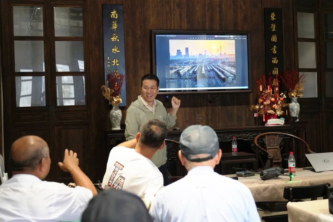 在古色古香的秀野堂,无人机老师赵剑带来了一堂生动的航拍科普课,让大家了解无人机的最新性能,欣赏彼此的摄影图片。“这个视角很好!”“看这朵云,300米高空无人机拍摄的效果真的不一样!”大家热烈讨论拍摄技巧和构图经验,在交流中提高数字技能。