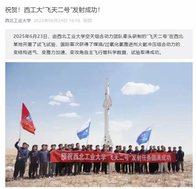 西北大漠深处一声轰鸣,烈火撕裂天空!2025 年 6 月 23 日本,西北工业大学“飞天二号”飞行器一飞冲天,