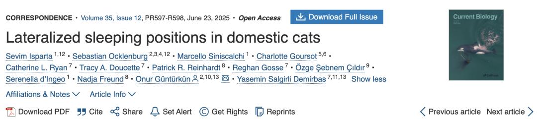 猫睡在顶刊上:三分之二的家猫倾向于向左睡觉。
