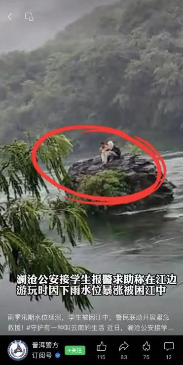 近日,云南省普洱市澜沧县公安局糯扎渡派出所接到报警。两名学生在水边玩耍时,因水位飙升被困在澜沧江中礁石上,急需救援。警方及时联系周边船舶支援,使用摩托艇。 救生服成功救出2名被困学生。