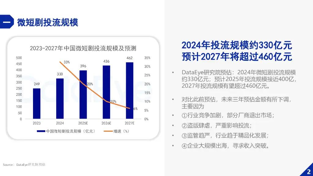一些动画短剧发行团队将目光投向了传统的“购买量”,但短剧“三分靠制作,七分靠投流”的时代早已过去,DataEye根据《2024年微短剧行业白皮书》的数据,2024年短剧行业的投资成本已达330亿元,比2023年高出81亿元。而且与真人短剧的成本相比,基本不占优势的动画短剧,根本没有更多的预算倾向于购买量。