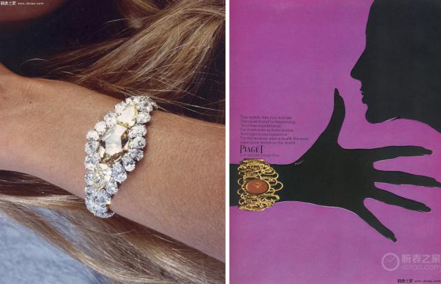 右:PIAGET 伯爵" 21 世纪系列“珠宝手表广告” ( 摄像师 Alberto Rizzo 于 1969 年拍摄 )