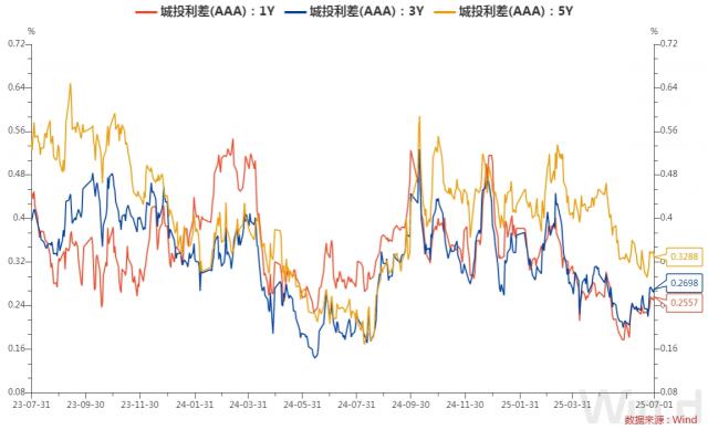 5. 最近城投债(AAA)每个期限的利差走势和数据