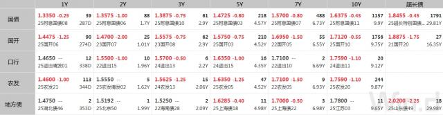 全国及主要股份制银行一年期同业存单最新交易 1.61% 周围,与上一天相比变化不大。