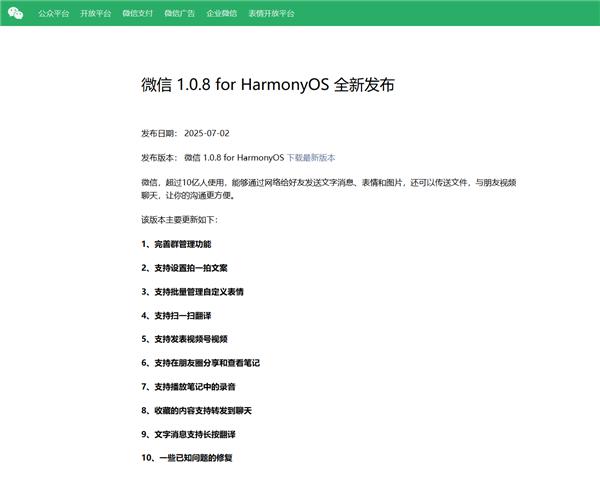 1.0微信鸿蒙版.8.35官方版本更新发布:支持发送视频号等9大功能