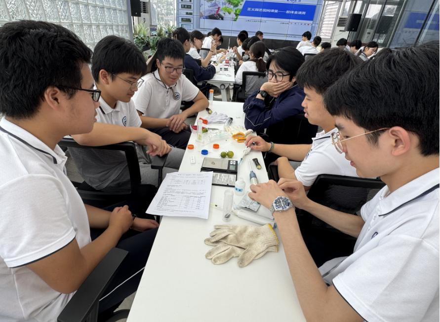在课堂上,一个大屏幕吸引了学生的注意力。屏幕上清晰地显示了养殖作物、农业状况、投入物进出仓库等所有实时信息。