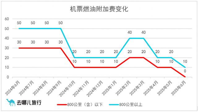7 月 1 日前,记者从第三方旅游平台了解到,有航空公司发布通知称,自 2025 年 7 月 5 日零时起(出票时间)调整国内航线客运燃油附加费,800 公里(含)以下航段向每位成人旅客收取。 10 元,800 向每位成人旅客收集公里以上航段 20 元。