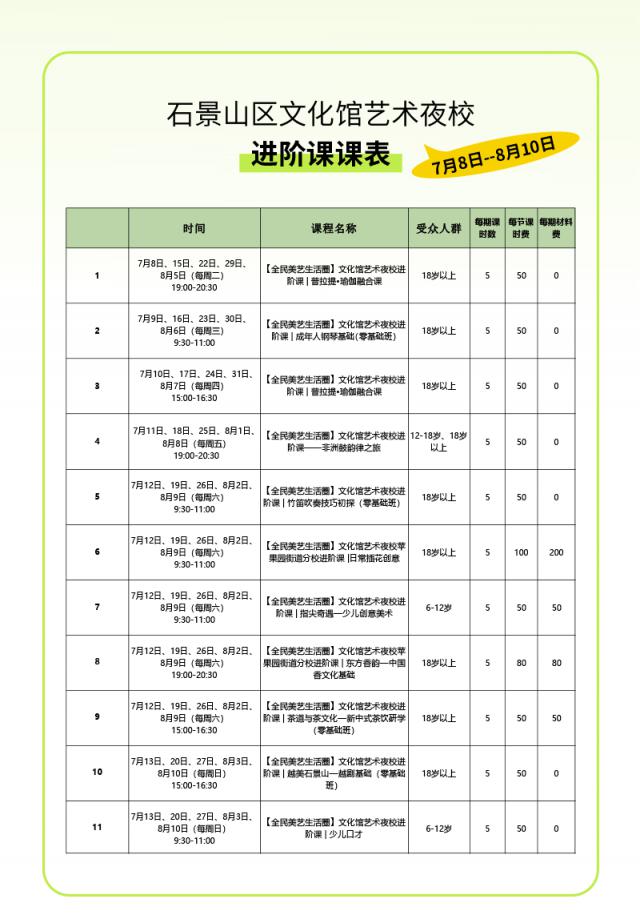 暑假限制!石景山艺术夜校上新