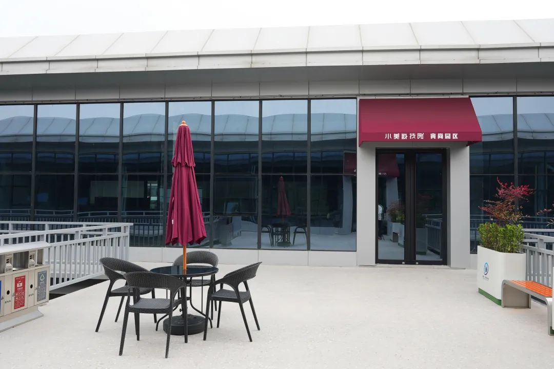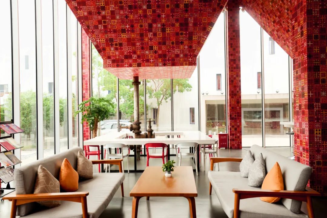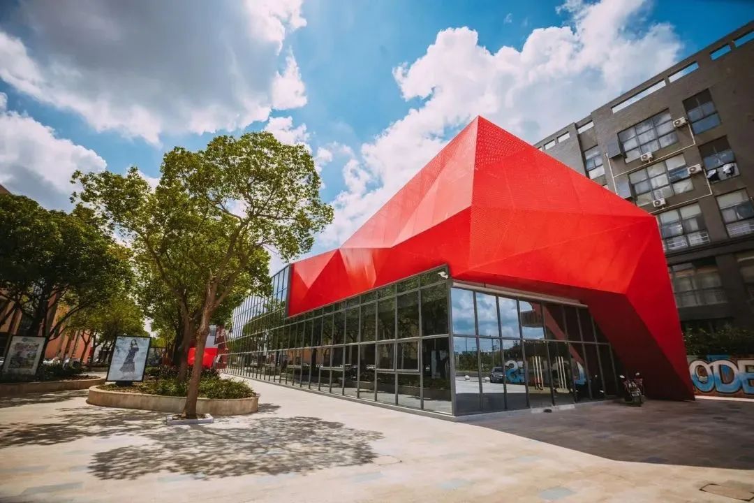 其中,园区特色地标——丁乙楼的创作灵感直接来自艺术家丁乙的绘画。设计师巧妙地将画中48种不同形状的“米”元素转化为定制烧制的陶瓷砖(产于广东佛山),覆盖在立面上,在阳光下形成丰富的光影节奏。