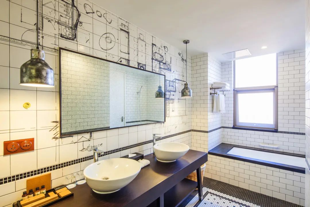 此外,酒店的每个房间都充满了乐趣:墙壁模拟铅笔的洞穴,镜框中嵌入细碎的彩色铅粉,设计师的手稿变成了独特的壁纸地砖...旧工厂的呼吸悄然融入到每一个居住的质感中。