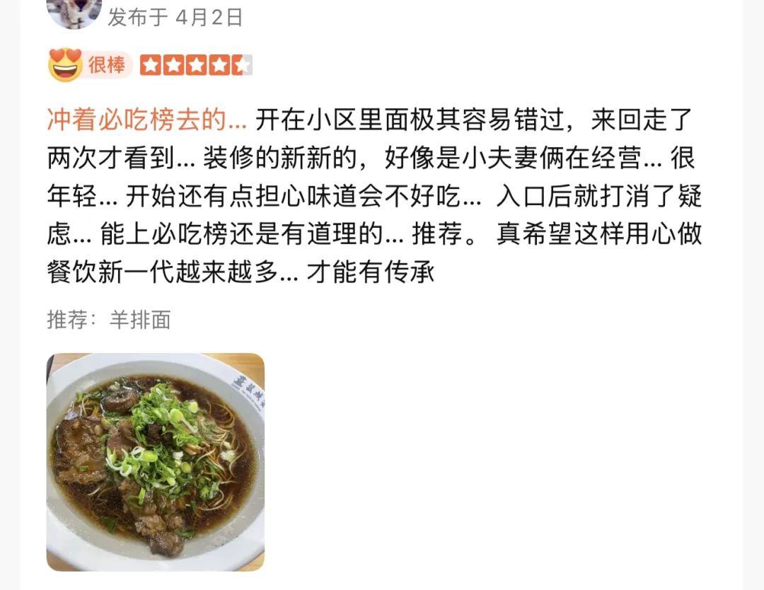 好评并非卷出来的 回放多年的餐饮业,淄博烤串、天水串香、贵州酸汤等地方美食轮流被流量砸中,迅速在全国扎根发芽。然后,他们经历了类似的“爆红-扩张-过时”的命运,没有任何意外。他们中的一些人生存下来,大多数人回到了原来的地方。 材料相对标准化、技术门槛低、生产工艺不复杂等共同特点,使得网红餐饮成为商家卷流的捷径。但是曾经有数据分析,2023年倒闭的餐饮店,一半是网红店,最短的生命周期可以不到一个月[3]。 除跟风热点外,另一种看似钻空子,实则事与愿违的常见做法是卷好评。 行业供大于求。面对众多选择,客户决策的重要因素之一就是看评价。因此,“换饮料/零食好评”已经成为商家推广评价的常用方式。 但是看着一色图文并茂、文采出众的赞美,顾客难免会心存疑虑。事实证明,在好评上搞内卷最终会被反噬。在整齐划一的评论区,一些差评开始受到“过度推广评论”的影响,顾客直接用脚投票,被诱导留下好评后,再也不想成为回头客。 举例来说,今年1月,“利益诱导好评”相关负反馈同比增长近30%,同比增长近30%。 商家也意识到了这一点,北京一家登上“必吃榜”的火锅店老板明确反对要求好评。第一,平台监管严格,可能会受到处罚;第二,如果菜品让顾客不满意,好评会更加厌烦,违背了餐饮作为服务业的初衷。 卷好评不但会失去消费者的选票,而且还会受到平台的惩罚。2024年,公众评论通过逐一审批,处理超过2000万条违规评论;建立“商业治理团队”,惩罚超过6万家违规企业。 被用户认可的“必吃榜”也会被所有刷赞的商家排除在外,即使曾经上榜,也会因违规炒作而随时被取消资格。 公开数据显示,2024年“必吃榜”发布后一年内,共有20家上市商家因未能继续遵循平台《商家评价诚信管理办法》被罚款。在今年的榜单评估周期中,平台通过大型机器模型和人工评估,发现去年榜单上有数百家企业因违反过去一年“真实有效的评估”而失去了评估资格。 就像盲目追逐网络名人爆款一样,诱导好评似乎带来了暂时的好处,但从长远来看,不仅给商家和消费者带来了负担,也扰乱了市场秩序。 商家将陷入持续的好评焦虑。当同行将及格线卷入4.5分时,下一个目标将继续用力过猛地卷入4.8分。而且当消费者一次又一次地带着对高分的期望走进餐厅,发现菜品和服务都不尽如人意时,也会逐渐失去对评价的认可。 企业对客流的追求是无可非议的,但是毫无意义的内卷通常是两败俱伤。幸运的是,追求“真实感”和“去滤镜”的趋势正在蔓延。那些有烟火、有特色、新鲜烹饪的食物越来越受欢迎,甚至被食客“吃”成了必吃榜,成为榜单的主角。 长期主义市场不会让市场失望。 在上海斜土路的住宅小区,一家开了3年多店的红烧羊肉面馆连续两年登上公众评论必吃榜,在这个代表消费趋势的城市占据了一个小位置。这家菜品简单、位置隐蔽的社区商店有些令人惊讶。 和很多小餐馆一样,这家面馆既没有资本在中心区域进行大规模营销,也没有资金去追热点和赞,甚至一度难以生存,因为高昂的店面租金只能搬到角落里。 唯一能卷的就是技巧。羊肉每天放血后,从湖州冷链直接送到上海。早上8点,大锅开始炖,让气味自然挥发。在继承传统烹饪方法的基础上,根据上海食客的口味适当调整辣度。 流量和口碑涌入深巷的过程可能会推迟,但是市场最终还是没有辜负脚踏实地的商家。 刚搬进地段较偏的社区后不久,由于食客的真实认可,小店登上了2024年的必吃榜,营业额增长了30%。宝山、青浦等地区的许多顾客来到这里。