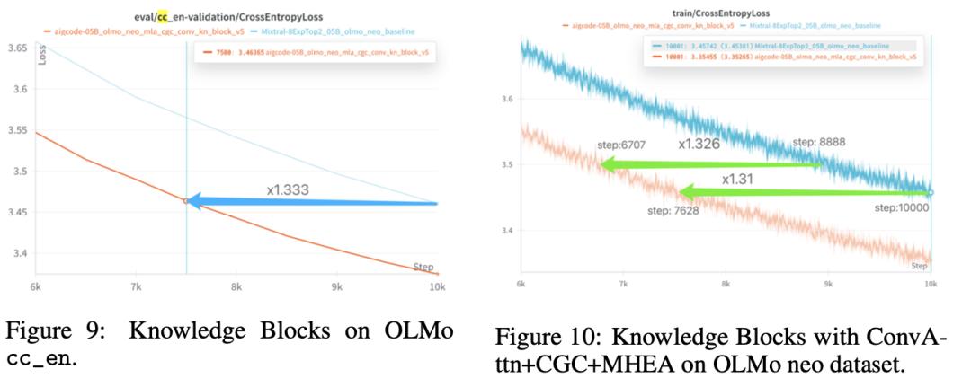 测试数据显示,无论是单个关键模块(左)还是整合后的完整结构(右),AIGCoder(橙色曲线)的练习效率比基线模型(蓝色曲线)高出1.3倍。