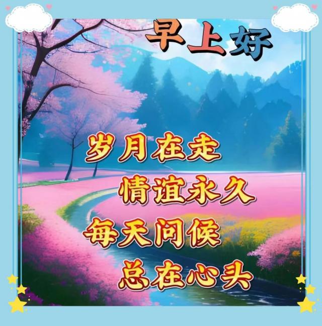 早上好运来了,一切都很幸福。福禄寿星幸福,健康财富来了。事业一步一步顺利,老少皆宜,老少皆宜。朋友的友谊如丝长,无时无刻不在。早上好!
