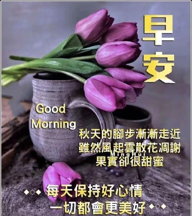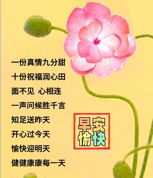 早上的问候是心意,是善良,永远珍惜,无论世界的尽头还是近距离,珍惜相识,相遇相知。真诚的祝福,我的亲戚朋友,一帆风顺,幸福快乐。幸福伴随我们一生。愿我们永远健康快乐!早上好!
