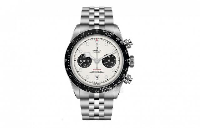 手表评价:看着帝舵的这块碧湾计时表,不得不说熊猫盘这种配色就是美丽而经典的存在。蛋白表盘配2个黑色小盘,视觉对比强烈,搭配 41 mm不锈钢表壳,整体感觉很有力量感。14.4 mm厚度是正常的计时表水平,与其它表款相比会稍微厚一些。经典的阳极氧化铝表圈,更加突出其运动表的定位。蓝宝石镜面,折叠扣,不锈钢表带,都是适当耐用的标准配置。表盘布局简洁,两个记时小盘分布平衡,日期窗口隐藏。 6 点位。机芯用的是 MT5813 自计时机芯,COSC 天文台认证,硅游丝加上 70 小时动力储备,这种配置放在50,000以下的价格很好。摆陀采用微调螺钉系统,更加精确,更加抗震。防水级别 200 米。总的来说,这款手表从设计到性能,都给人一种踏实的感觉。假如你喜欢略带复古感的设计,并且希望表别太娇气,那么这个熊猫盘帝舵就是一个可以闭上眼睛的选择。