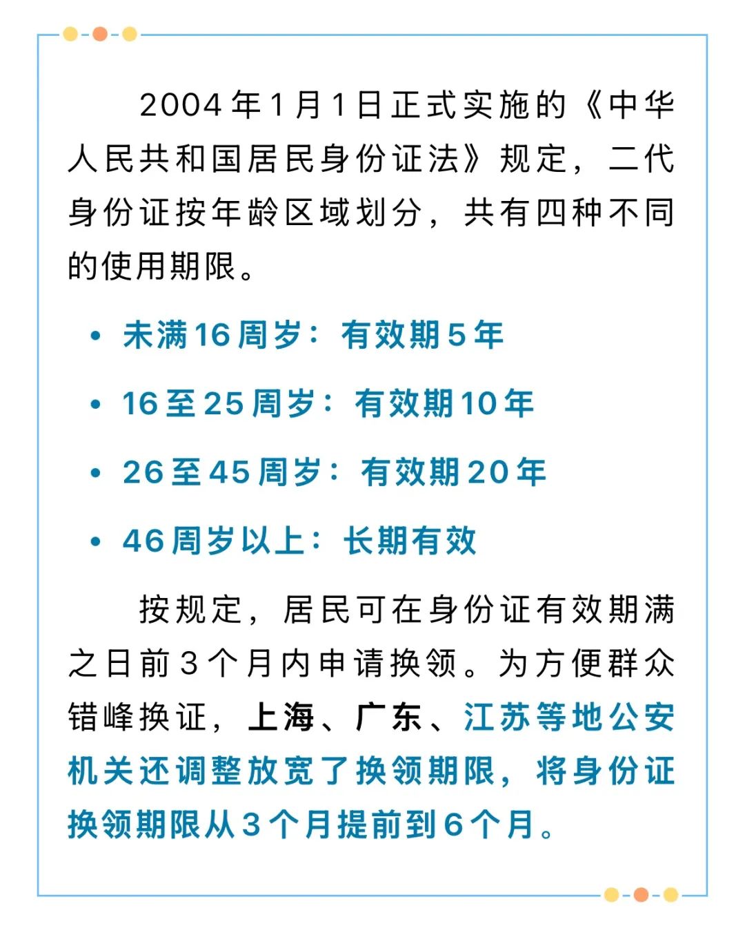 最近,许多网民发现他们的身份证即将到期。从2004年底到2008年,是我国第二代居民身份证集中换发的阶段。今年是第一批有效期为20年的第二代居民身份证到期换发高峰期。