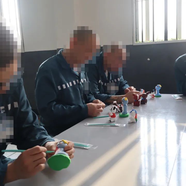 运用心理学专业知识,通过房树人等沙盘训练和字画兴趣小组的团建活动,提供情感发泄出口,借助教具和画笔探索心灵场景,矫正师准确引导罪犯情绪。