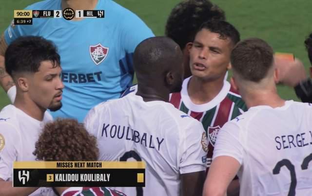 新月的角球进攻,库利巴利挥空,起身后想保护球。库利巴利在集体混战中倒下,想要点球。蒂亚戈 - 席尔瓦霸气地走上前去,几乎是脸贴脸导出:别演了,你是假摔!