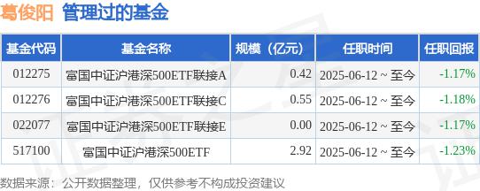 葛俊阳先生:中国国家,研究生,硕士。自 2015 年 11 月入富国基金管理有限公司,曾任助理定量研究员、初级定量研究员、定量研究员、定量投资经理。 ; 现任定量基金经理。2025 年 06 月 12 担任富国中证沪港深港。 500 交易型开放指数证券基金,富国中证沪港深圳 500 交易型开放式指数证券基金与基金经理联系。2025 年 6 月 16 日起担任富国创业板中盘。 200 交易型开放式指数证券投资基金发起式连接基金,富国创业板中盘 200 交易型开放式指数证券基金经理。