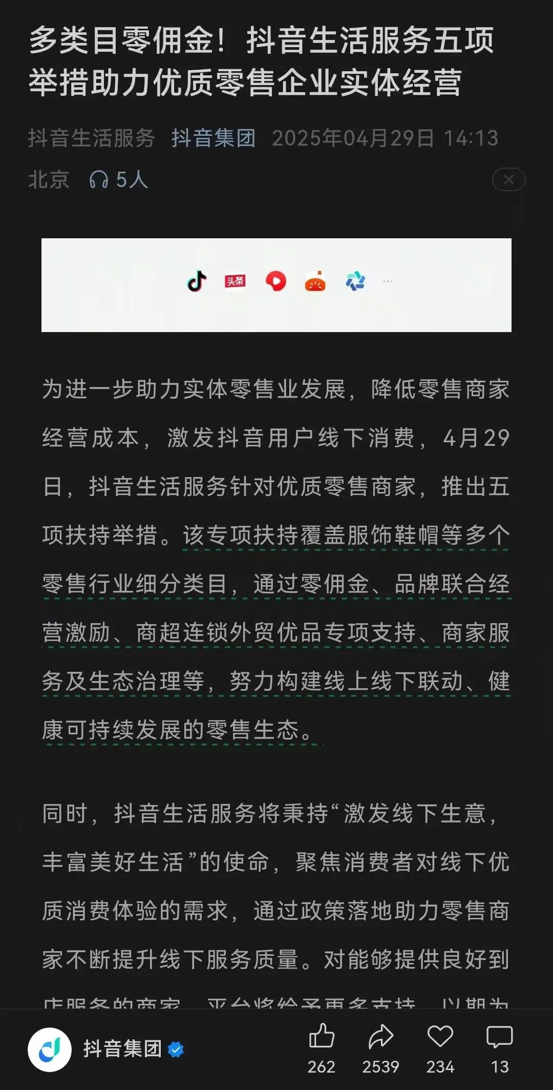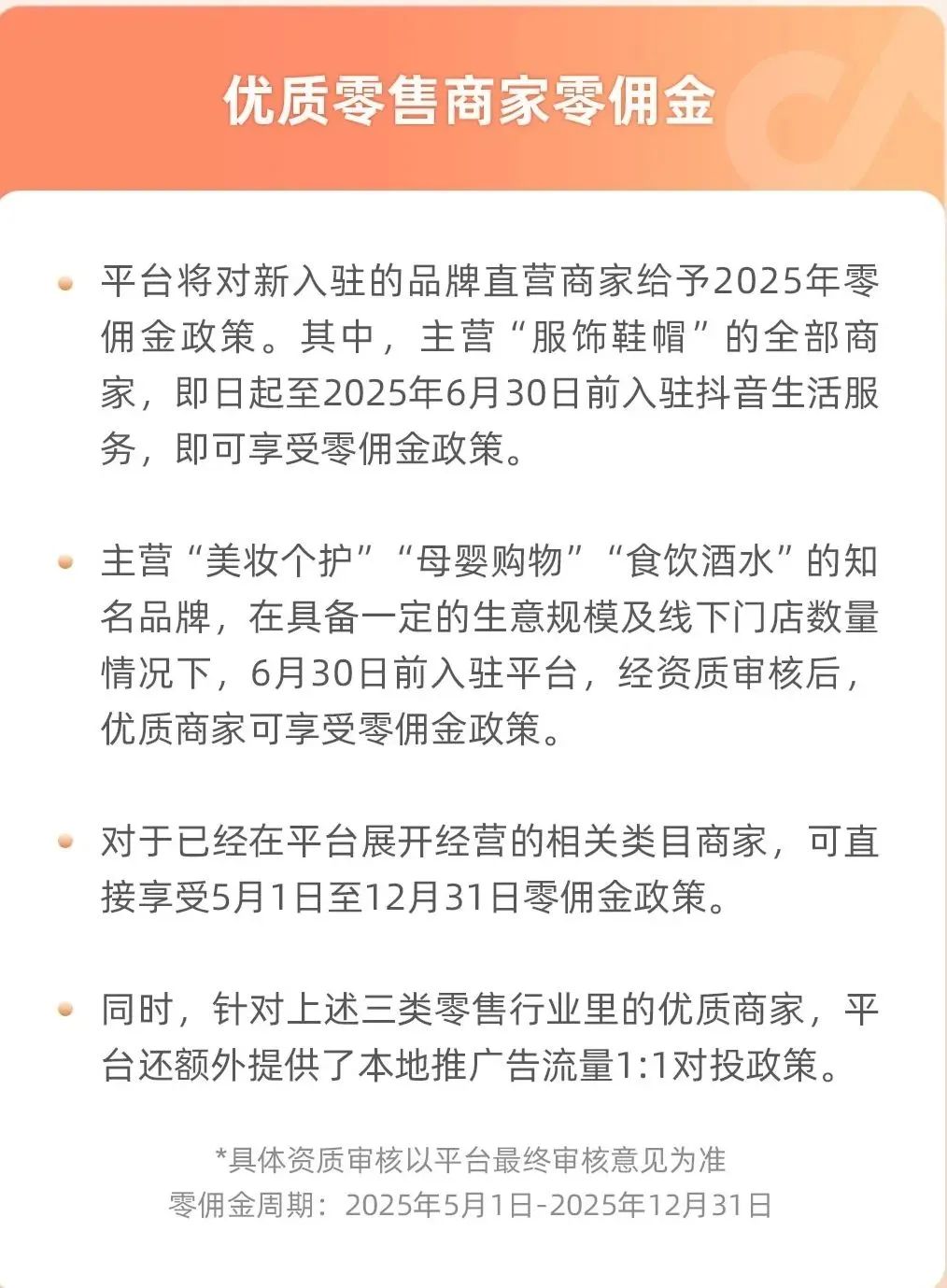 Tiktok调整了平台的佣金政策,希望留住高质量的商家,选择能够持续为平台赚钱的商家。比如2025年给新品牌直营商家零佣金政策,2025年6月30日前进入服装鞋帽商家可以享受零佣金。