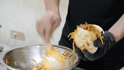 顾县肉合制作工艺非常独特,饼皮经过反复揉捏、擀制后,先在特制的铸铁板上烙上火色,然后倒入炉中烘烤。烤好的饼皮薄而脆,呈空心状,轻轻一敲,便能传出清脆的声音。将黄瓜、包菜等食材与猪头肉、猪耳丝、牛肉等组合在一起,倒入特制的料汁和辣椒油,搅拌均匀,放入整个饼中。一口咬下,热饼皮的酥脆,冷馅的鲜美瞬间在口中交融,那叫一股香味。