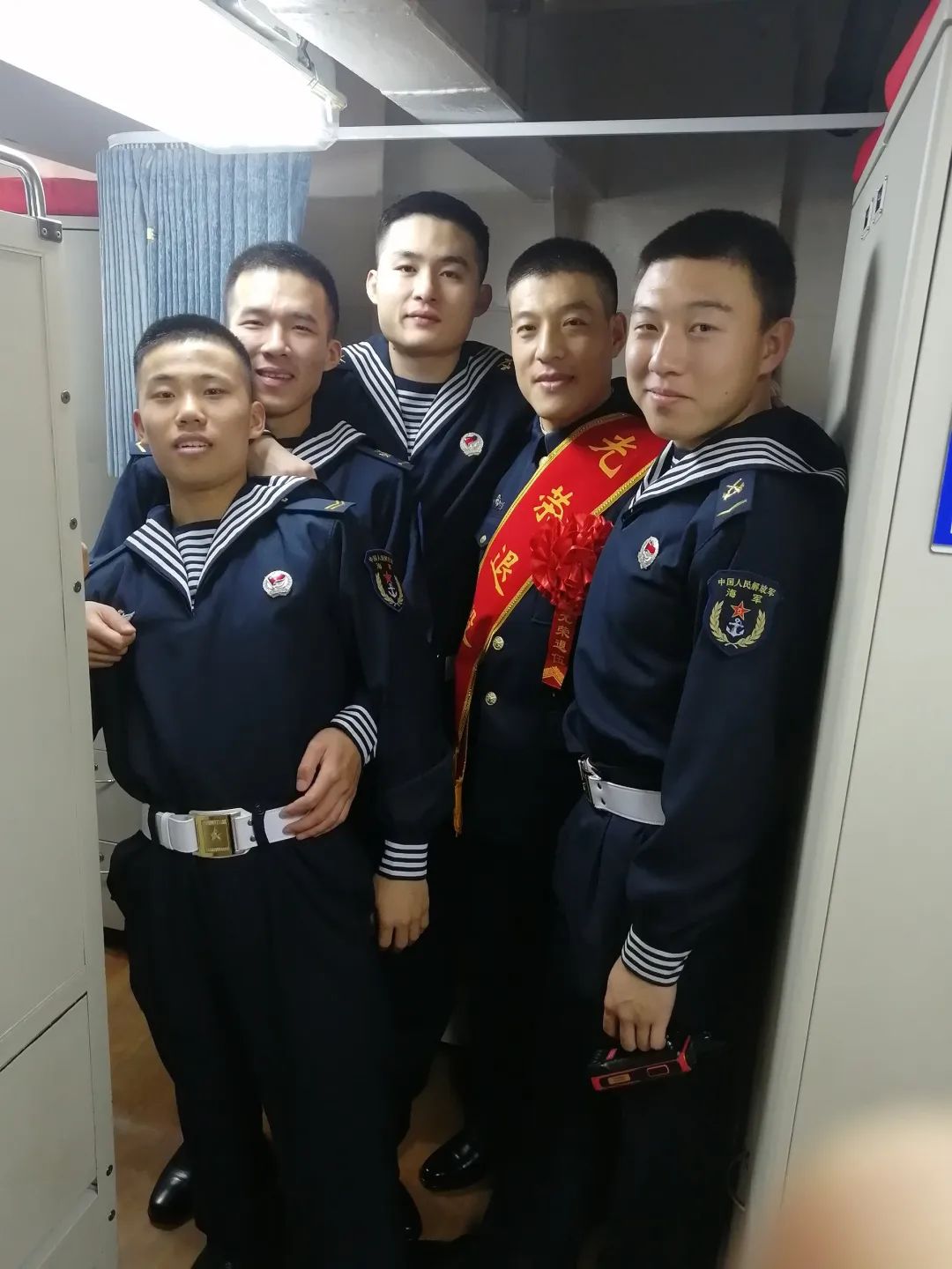 这张照片是我退休时和我的同志们的照片。2010年,作为第一批航母舰员,我被选为辽宁船长。与同志们并肩作战的那一天,是我最难忘的回忆。
