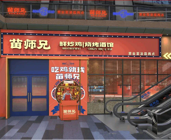 苗师哥鲜炒鸡(正弘城店)于2021年11月升级为“鲜炒鸡” “烤串酒馆”复合业态,引进烤串、热卤、鸡尾酒等品类,营业时间增至凌晨2点,试水宵夜市场。
