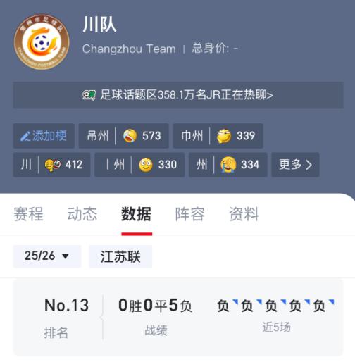 常州队一路输球到现在,连平手都没有。