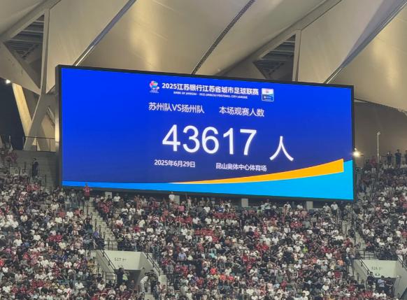 就客座率而言,苏超是欧冠、德甲等级。6 月 29 号码苏州对扬州,乌大来了。 43617 号码。即使是今年人数创下新高的中超,也只能达到苏超的一半。