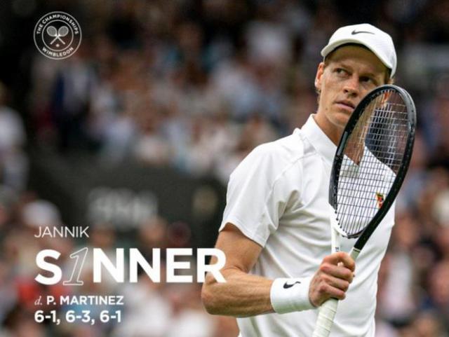 北京时间 7 月 5 晚上,温网男单第 3 轮子,头号种子辛纳迎战全球排名。 52 位于马丁内斯。在比赛中,辛纳几乎没有遇到任何障碍,很快 3-0 赢得比赛,轻松晋升 16 强。
