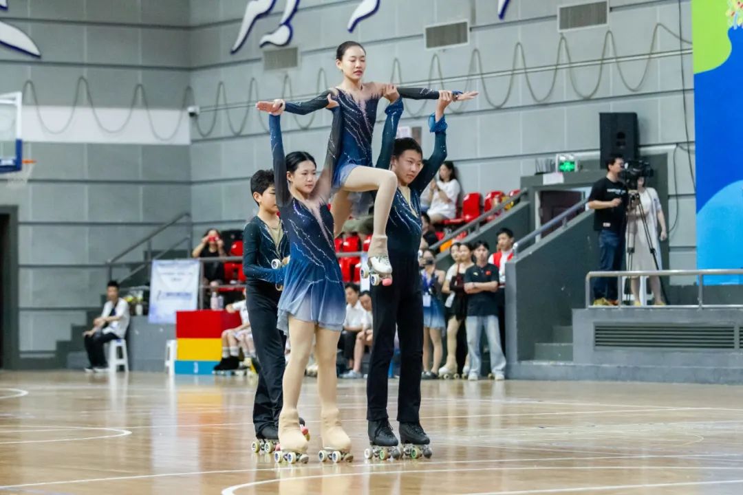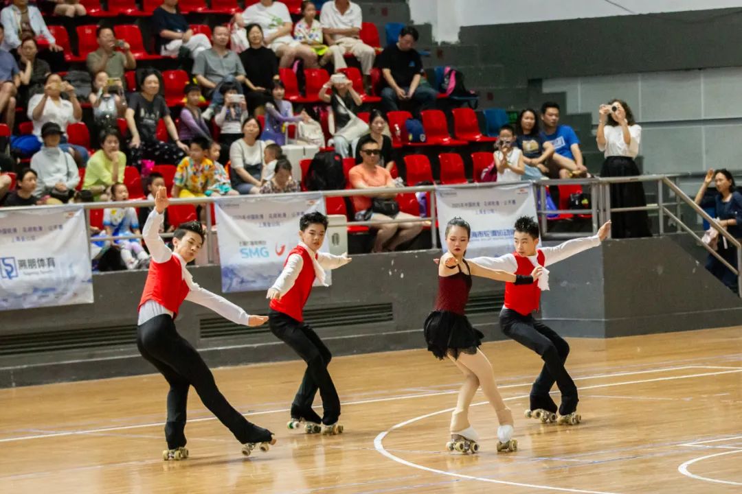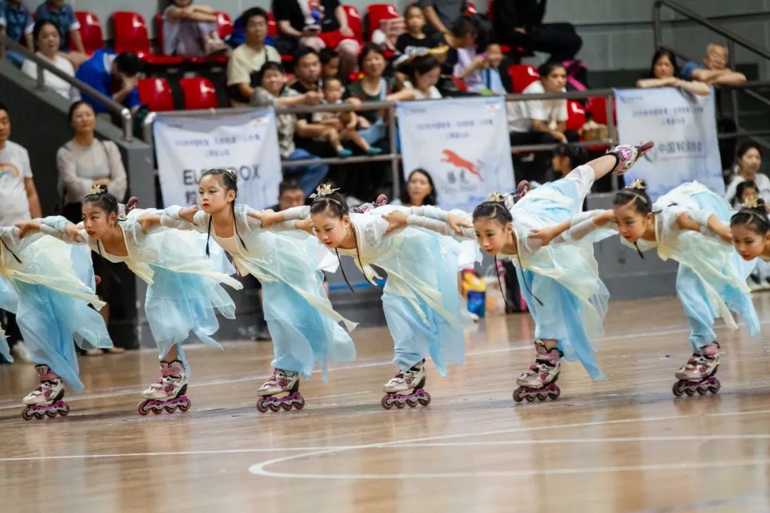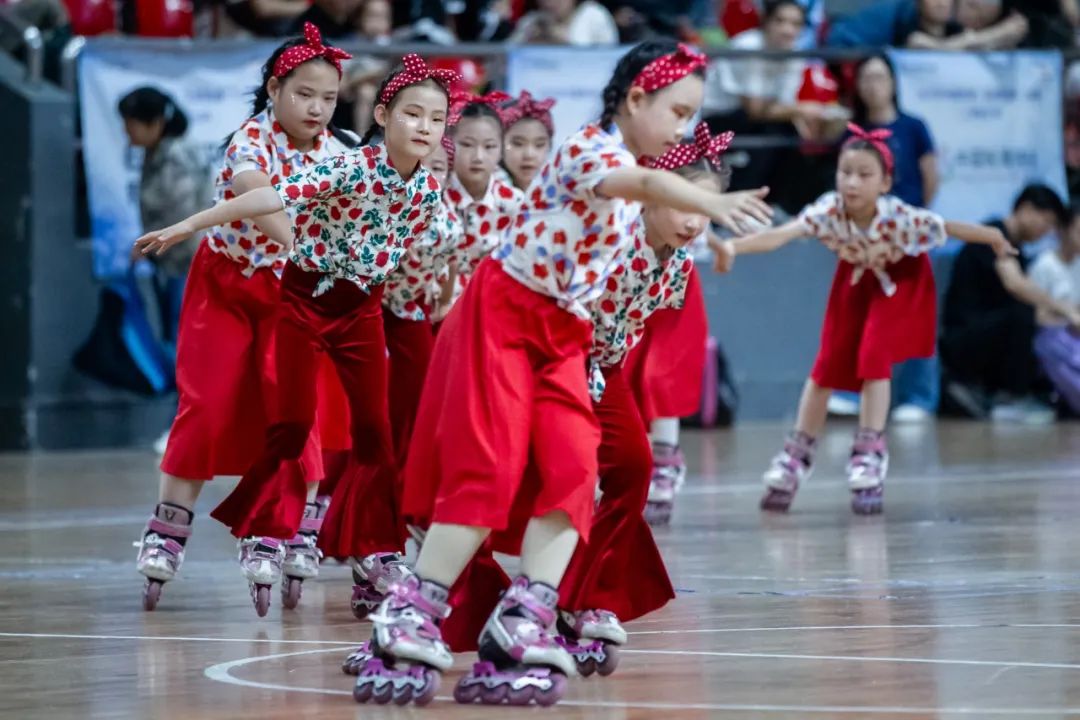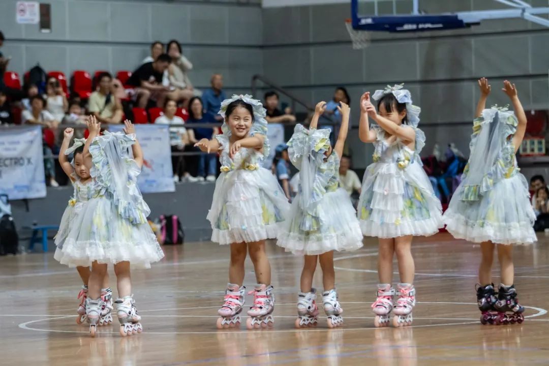此次比赛设项十分丰富,现场依次进行四人秀、队列滑、小团秀、单排单人滑、双排单人滑、单人舞、双人滑和双人舞八个小项的比拼。其中,来自江苏省徐州市云兴小学带来的队列滑“距式燕飞”赢得全场喝彩。古风造型搭配唯美音乐,为观众带来了一场沉浸式的东方美学体验。