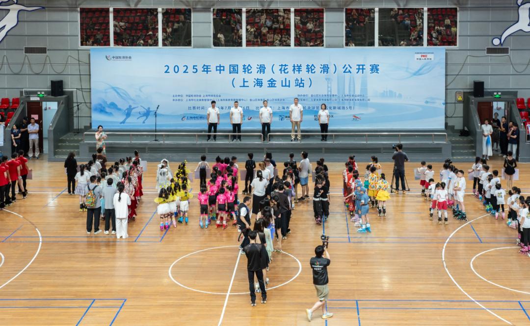 7月5日上午,2025年中国轮滑(花样轮滑)公开赛(上海金山站)在金山轮滑球馆盛大开赛。来自上海、陕西、江苏、广州、湖北、黑龙江等地的30多支轮滑队、200余名选手齐聚金山,在赛场上展开激烈角逐。
