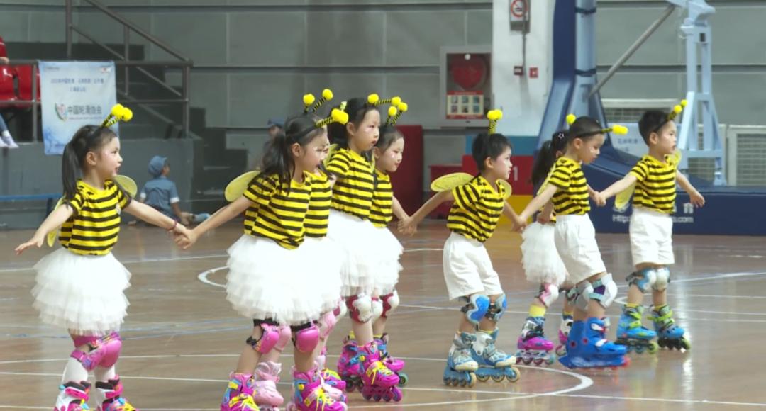 上海市音乐幼儿园带来的《春之声圆舞曲》轮滑表演萌态十足,“萌翻”全场。9位中、大班小朋友化身小蜜蜂,生动演绎出春日生机。该园轮滑老师包雯怡说:“孩子们年龄小,练习时间也不长,今天能在台上完整连贯地做出所有队形,已经非常棒了。带他们来参加大型赛事,就是想让他们在舞台上展现自我。”