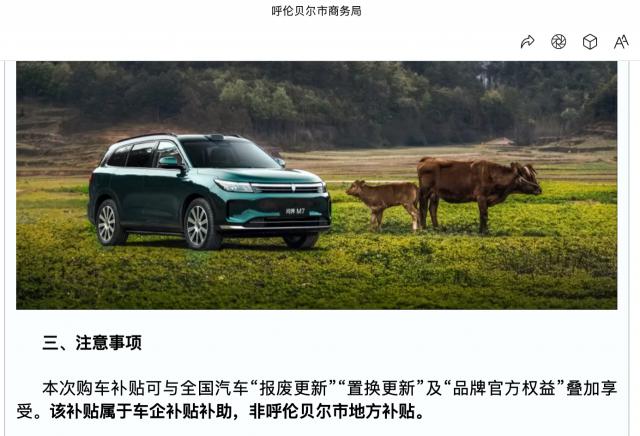 其中,呼伦贝尔市商务局明确表示:“该补贴属于车企补贴补助,非呼伦贝尔市地方补贴。”