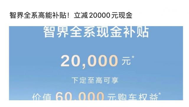 此前,6月26日上午,鸿蒙智行发布消息:智界全系车型提供2万元现金补贴,当日起下订至高可享价值6万元购车权益。降价后,智界S7的起售价降至20.98万元,智界R7的起售价降至22.98万元。