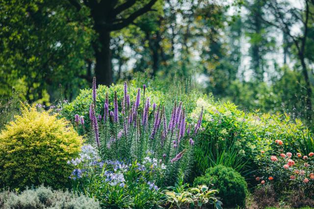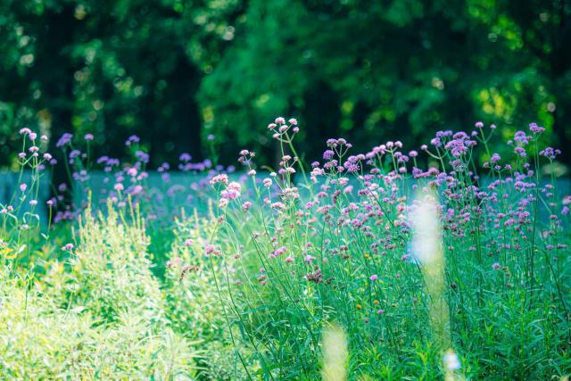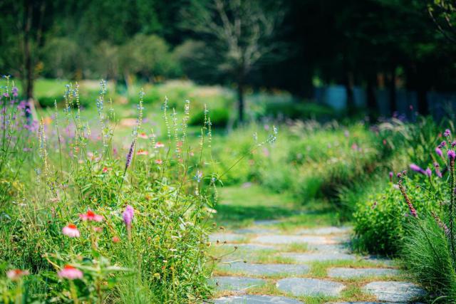 由原无障碍花园升级而来,上层种有樱花、海棠,春季繁花似锦;下层配置金鸡菊、八宝景天等宿根花卉,形成色彩斑斓的花境,打造可触摸、可感知的自然空间。