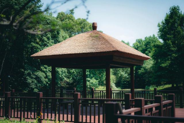 采用竹木复合材料铺设栈道、以海芦苇建造景观亭,有效降低碳排放,确保建设本身与自然环境和谐共生,贯彻"生态优先"理念。