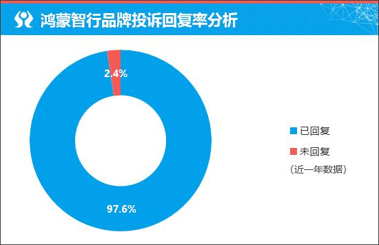 在衡量新车售后服务口碑时,我们通过企业对车主投诉的回复情况进行分析,相对客观地预判新车未来的售后服务口碑。据车质网数据显示,近一年鸿蒙智行品牌的投诉回复率为97.6%,可见厂家重视车主诉求,积极解决已出现的问题。