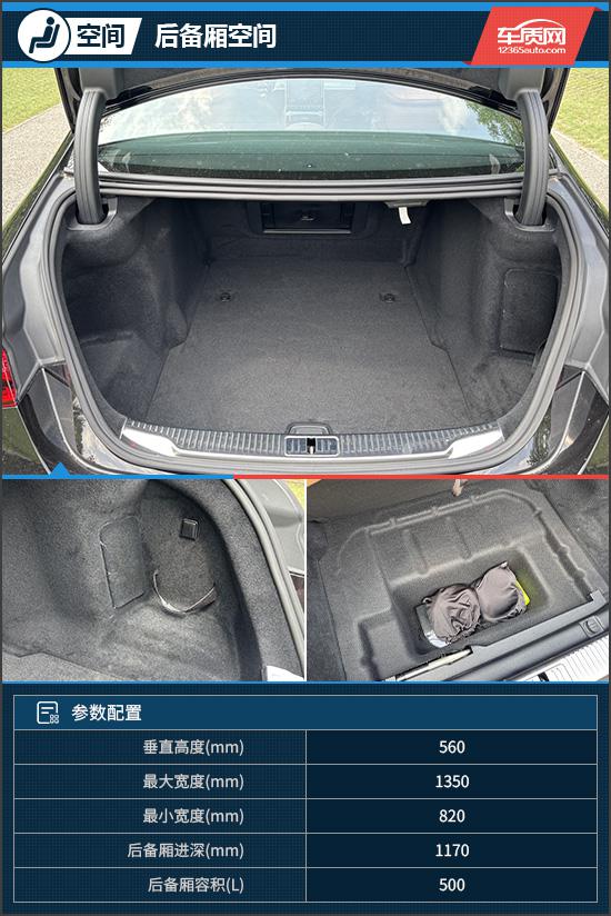 官方数据显示,评测车后备厢常规容积500L,后排座椅不能放倒,装载拓展性受限。后备厢内部规整,但功能单一,只有锚点、绑带、12V电源等基础功能。好在后备厢盖板下方有额外储物格,可优化装载能力。