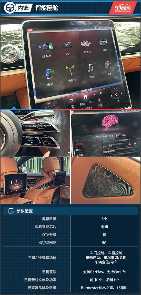 智能座舱方面,12.8英寸OLED中控屏内置最新MBUX车机系统,操作丝滑,配合触控反馈更精准。驾驶者可通过指纹、人脸识别登录个人账户,享受个性化配置服务。语音交互首次支持后排语音控制,部分功能无需唤醒词,交互自然流畅。多座互联系统支持前后排隔空共享音视频内容,实现全车互联。柏林之声音响加入座椅振荡器,带来沉浸式视听体验。