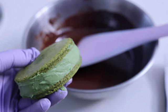 夹心馅:25克淡奶油、180克奶酪、18克糖粉、5克抹茶粉