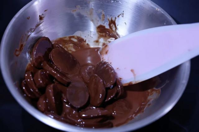 9. 巧克力币加入椰子油,隔热水融化。